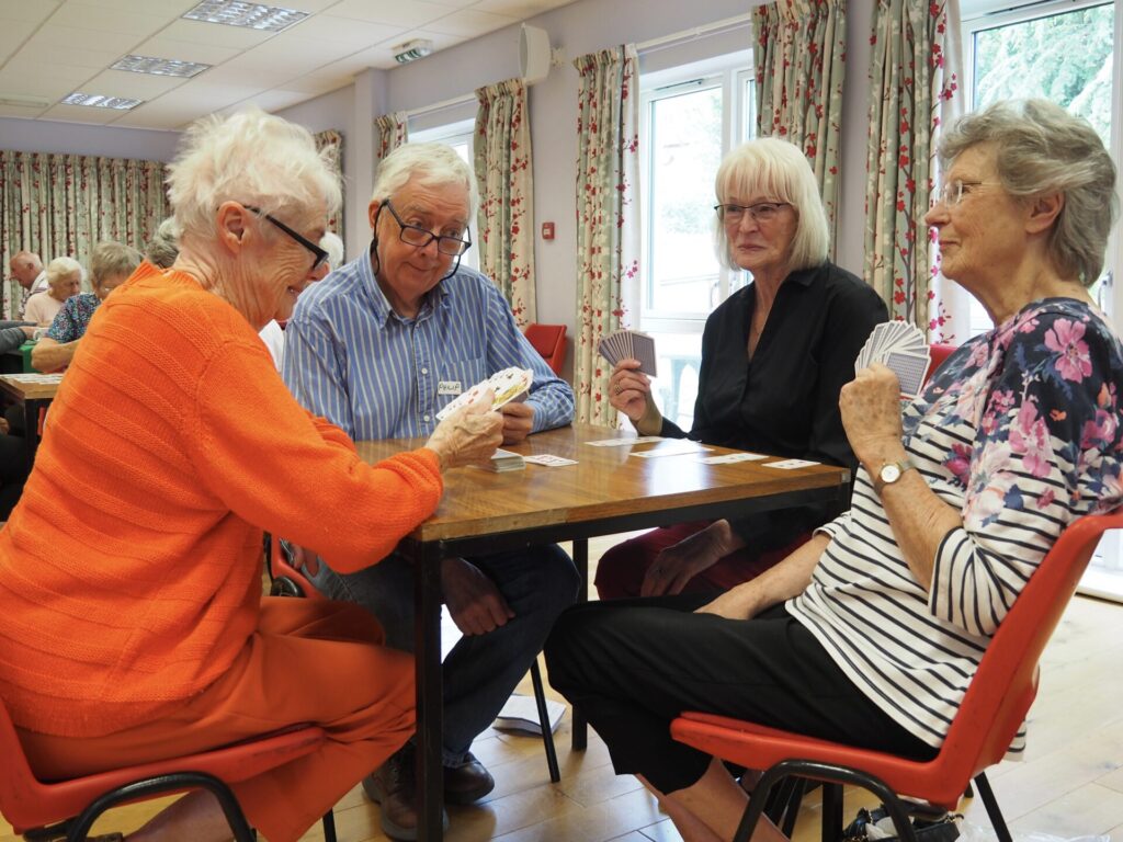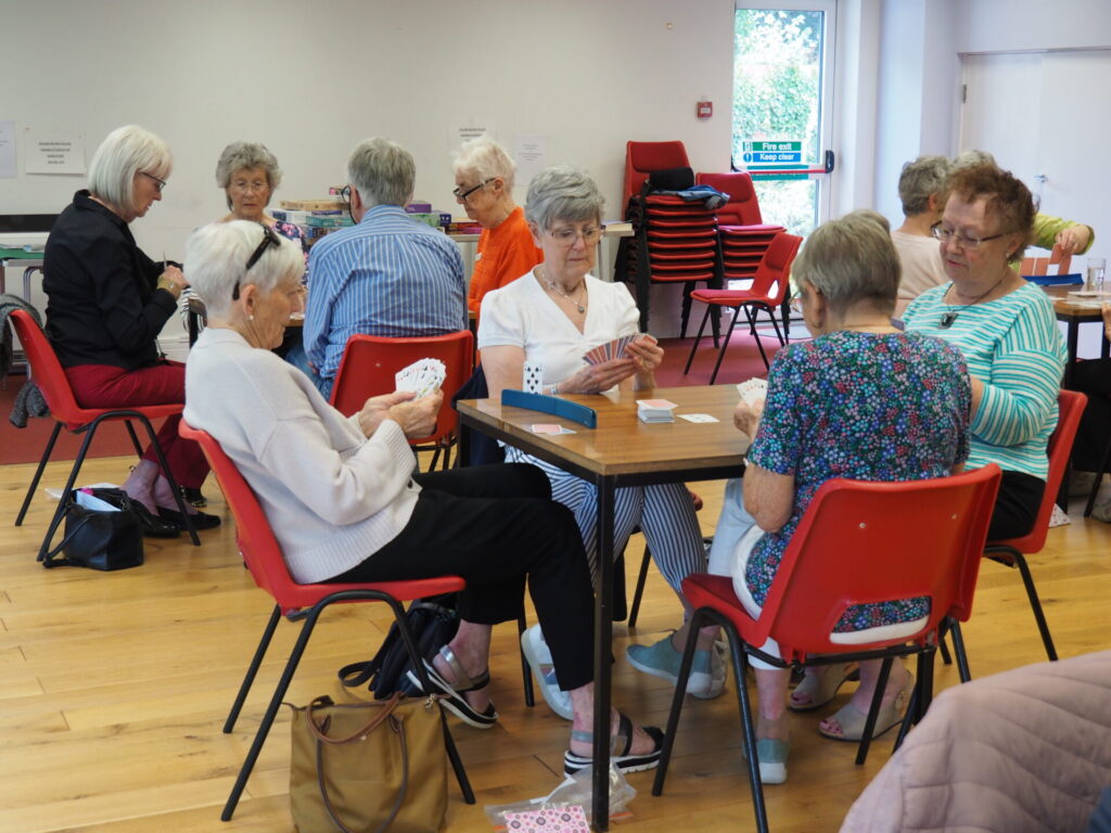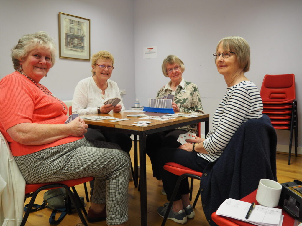 Bolivia is a Canasta-style card game of skill and luck, great fun to play, beginners welcome. No two games are ever the same. We play with 3 packs of cards and 6 jokers, usually in partners but also singly, between 2 and 6 players on a table. We are a friendly group and new members are always welcome.